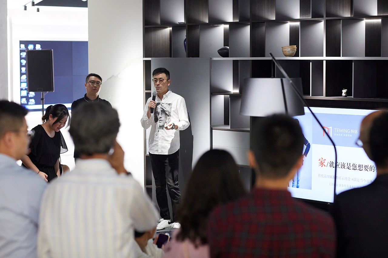 現(xiàn)場由特銘家具事業(yè)部總監(jiān)張曄分享品牌歷史,國內(nèi)知名設(shè)計(jì)師王征、合作品牌戈蘭尼電器現(xiàn)場講述品牌合作背后的故事,藝術(shù)與文化的結(jié)合,讓啟幕儀式更具意義。