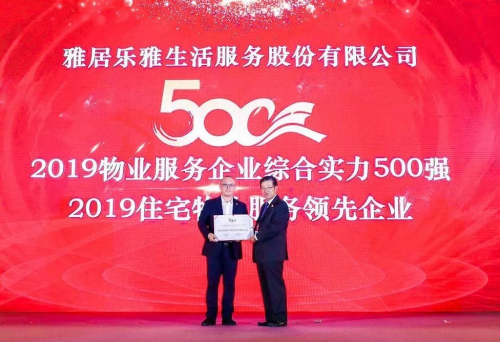 在下午舉辦的主論壇上,雅生活摘獲中物研協(xié)頒發(fā)的“2019物業(yè)服務(wù)企業(yè)綜合實力500強”第七名和“2019住宅物業(yè)服務(wù)領(lǐng)先企業(yè)”兩項重要殊榮。副總裁兼物業(yè)服務(wù)公司總裁馮欣作為代表上臺領(lǐng)獎。