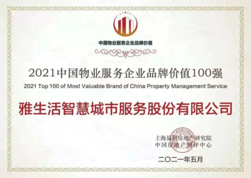 雅生活集團(tuán)作為中國(guó)物業(yè)管理行業(yè)百?gòu)?qiáng)TOP4,榮獲“2021中國(guó)物業(yè)服務(wù)企業(yè)品牌價(jià)值100強(qiáng)”,憑借優(yōu)異穩(wěn)定的市場(chǎng)表現(xiàn),實(shí)施“智慧城市服務(wù)商戰(zhàn)略”使雅生活品牌影響力與發(fā)展?jié)摿ψ咴谛袠I(yè)前沿,品牌價(jià)值再創(chuàng)新高達(dá)到108.72億,品牌實(shí)力更上新臺(tái)階。