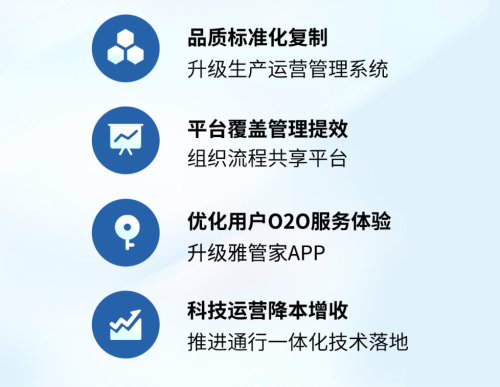 未來,雅生活集團(tuán)將著力打造五大核心競爭力,分別為服務(wù)產(chǎn)品力、市場拓展力、科技運(yùn)營力、整合組局力以及高效組織力。集團(tuán)將始終堅持品質(zhì)核心,持續(xù)提升服務(wù)標(biāo)準(zhǔn)化,不斷創(chuàng)新、迭代服務(wù)產(chǎn)品,打磨服務(wù)產(chǎn)品及口碑,梳理不同業(yè)態(tài)服務(wù)產(chǎn)品標(biāo)桿。